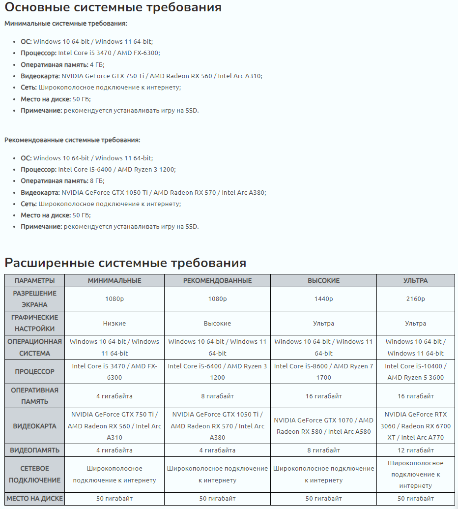Masaks123 Вопрос видеокарты тут по-прежнему актуален, с изменениями в графической части игры ранее могли отвалиться архитектурно устаревшие видеокарты. Если же системные требования проекта видеокарта проходит — их можно найти тут, но оставлю скрин — следует попробовать обновить видеодрайвер.