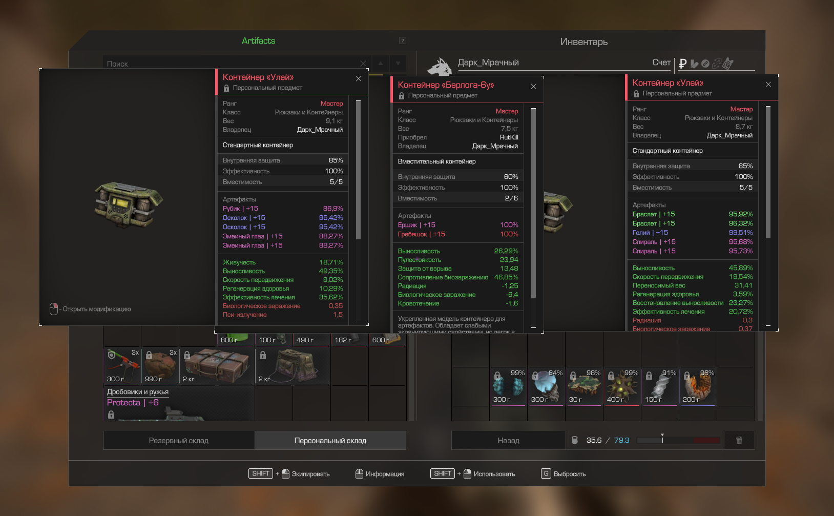 в этом плане я мега нищ, часть сборки в берлогу была продана для бартера штурмы (было морской(р) + 3 осколка (о) + бусы(о) + глаз(и))
