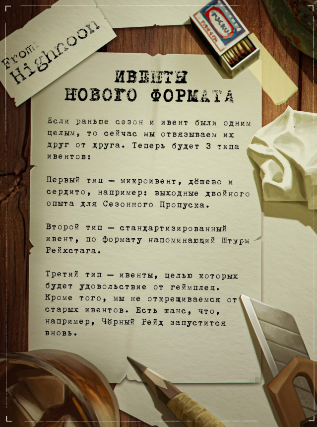 Да, подход к этим двум ивентам был разное, потому что летом создавался по старому образцу, который “сжирал” большого кол-ва ресурсов, из-за чего страдала разработка над тем же постоянным контентом, а осенью перешли на новый образец, где ивенты различного масштаба проходят в течение сезона и где отдельная команда занимается разработкой ивентов, не замедляя выход постоянного контента.
