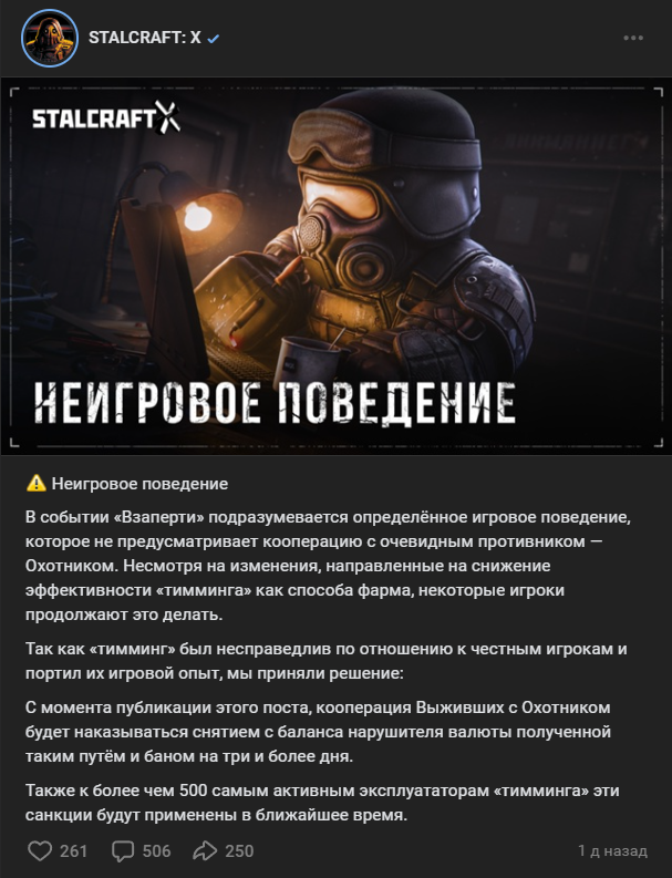 Передавали жалобы. Сам по себе охотник так сам себе руинит сессию, потому что он за такое ничего не получит и просто зря время потратит, если к нему не будут бегать выжившие.